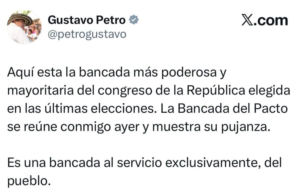 A través de un mensaje público, el mandatario destacó el resultado obtenido por la coalición y señaló que se trata de una de las bancadas con mayor representación en el Congreso de la República de Colombia.